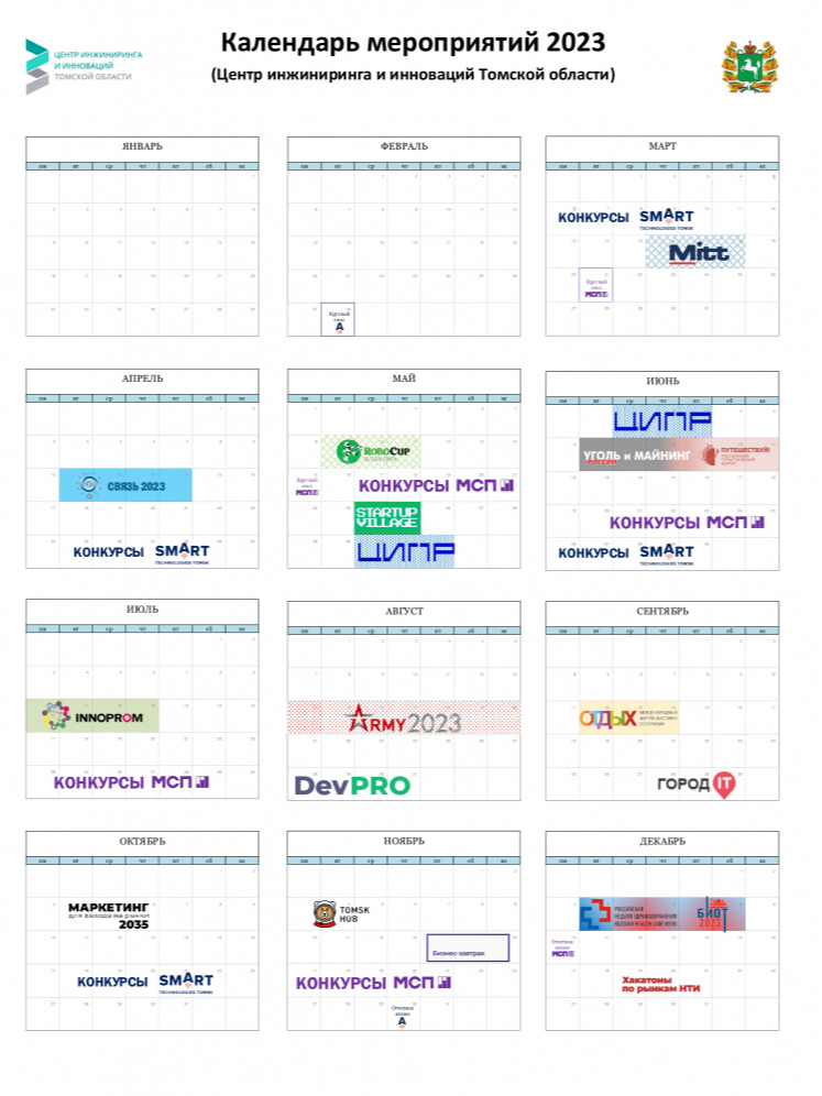Календарь мероприятий и события на 2023 год Центра инжиниринга и инноваций Томской области.